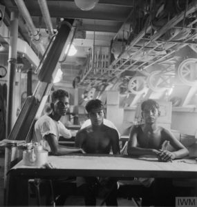 JOURNALIndia 1944- Three stokers of the Royal Indian Navy on the mess deck of the sloop HMIS SUTLEJby Editors India 1944: Three stokers of the Royal Indian Navy on the mess deck of the sloop HMIS SUTLEJ.